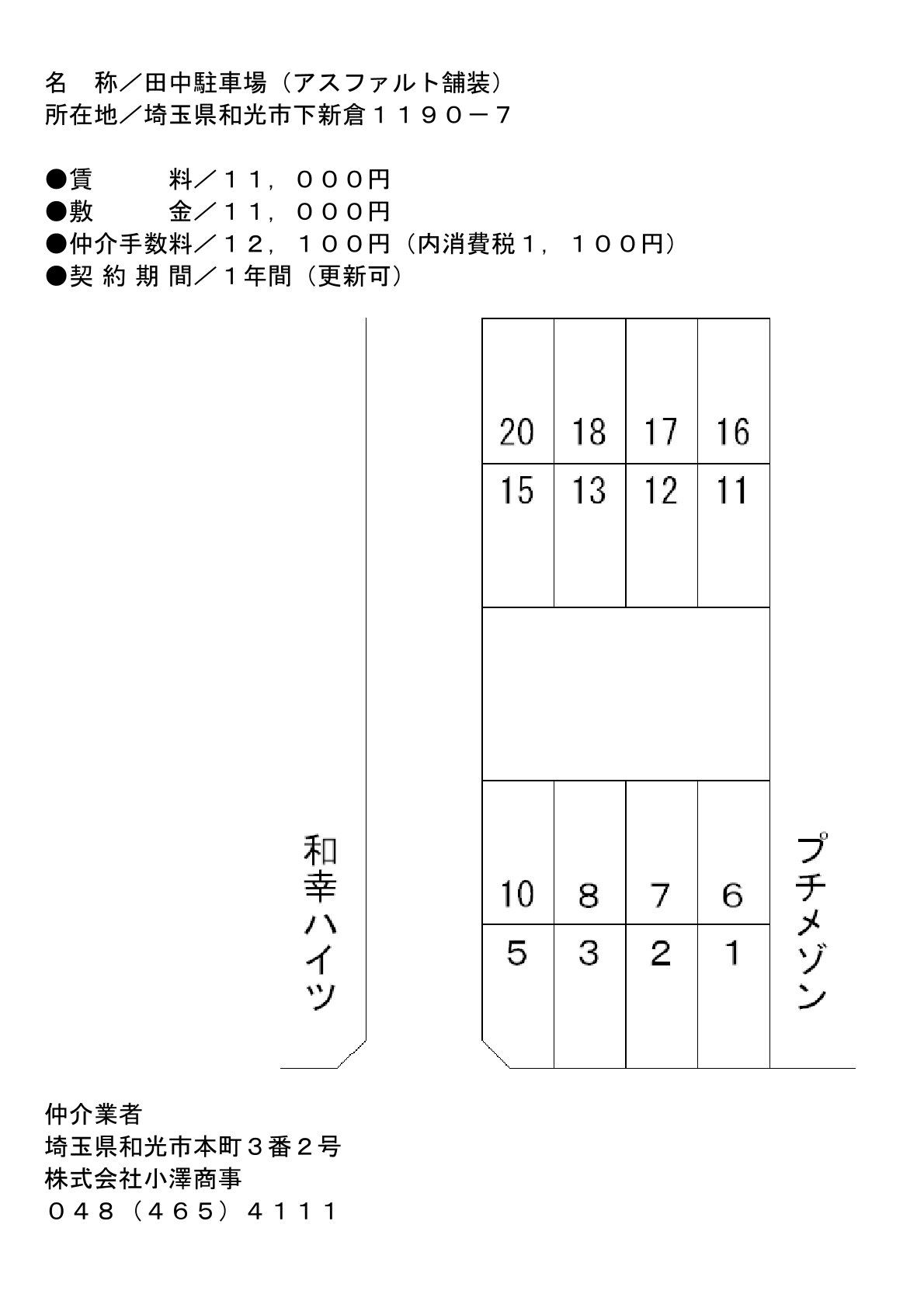 | 備考 | 現在の駐車場の空き確認をお願い致します。